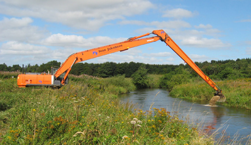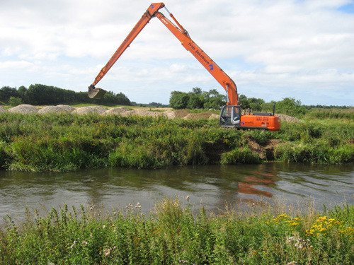 Så er maskinen startet med at anlægge den nye gydebanke i Bur.