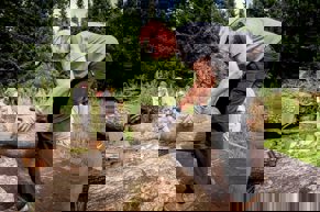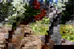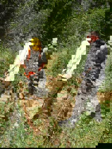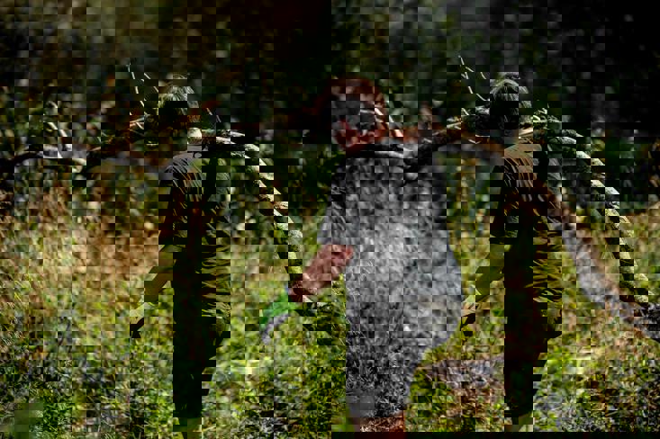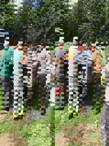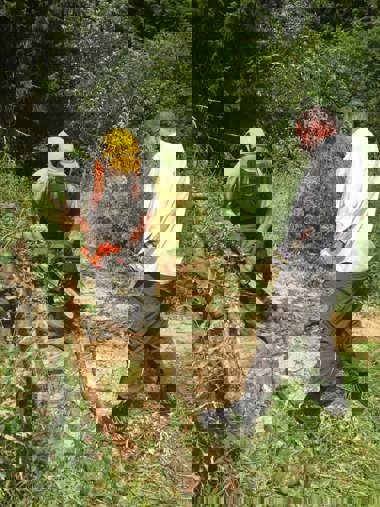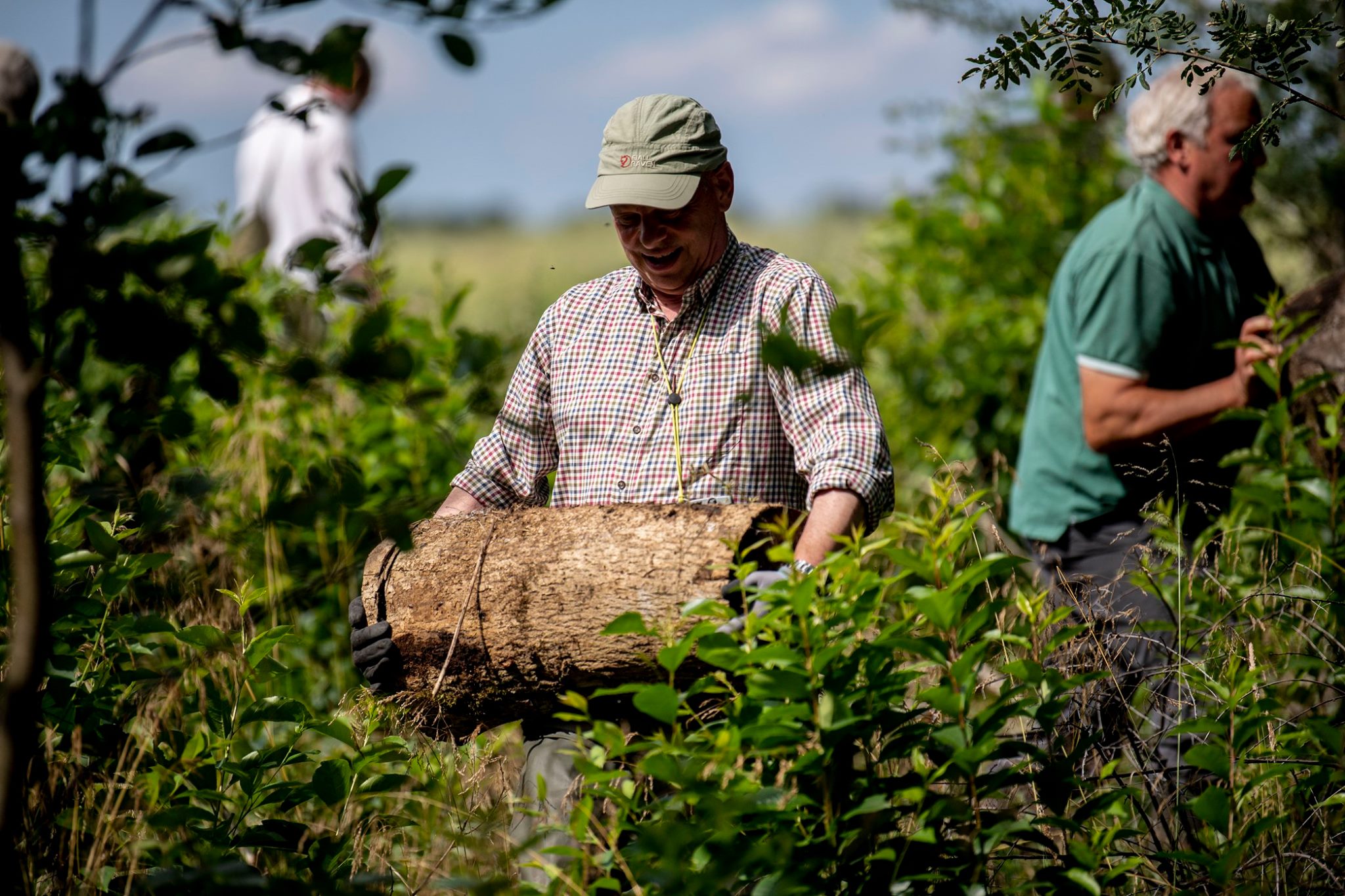 På en hed sommerdag klargøres til udlægning af dødt ved i tilløb til Vegen Å
